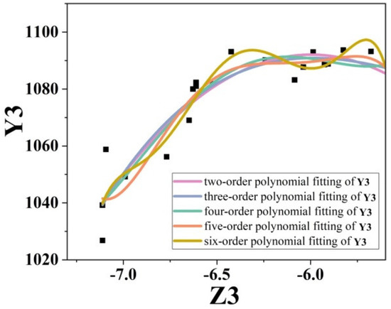 To verify those multi-order polynomial results and find the optimum order, we select a real value (1069, 906.1), where Z = −3.66. According to the error results from Table 3, we can find four-order polynomial is the best.