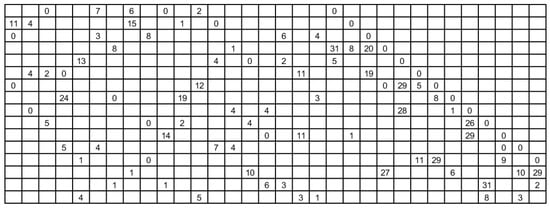 A binary LDPC code is defined by its binary parity-check matrix of size , where N is the code vector length, is the number of parity-check bits, and is the length of an information vector. The code redundancy is indicated by the code rate, which is defined as . In the systematic encoding process, M parity bits are added to the information vector , forming the code vector (code word) . In the mathematical formulation, the vectors are over the Galois field —specifically, for the binary codes considered in this paper.