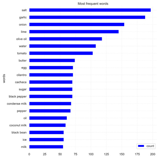 Top 20 ingredients for the Brazilian cuisine class.