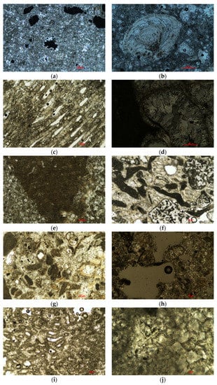 - Choquette, P.W.; Pray, L.C. Geologic nomenclature and classification of porosity in sedimentary carbonates. AAPG Bull. 1970, 54, 207–250. [Google Scholar] [CrossRef]