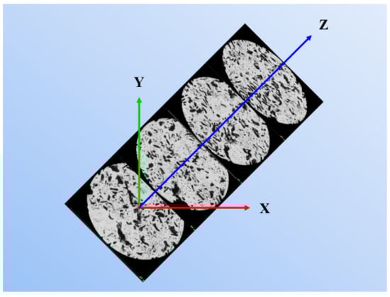 As aforementioned, the resolution of the imaging in the X, Y, and Z axes, i.e., the distance between adjacent slices (cross-sectional pictures), was set to 61.75 μm for the carbonate samples and 30.45 μm for the sandstone sample. Scanning a single rock sample took approximately 1 h with an operating current of 150 μA. A total of around 3200 cross-sectional pictures were obtained for each carbonate sample while scanning the sandstone sample generated 6430 cross-sectional pictures.