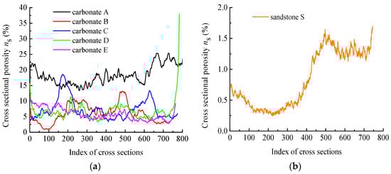 Distribution of cross sectional porosity along the direction of Z axis. (a) Carbonate. (b) Sandstone.