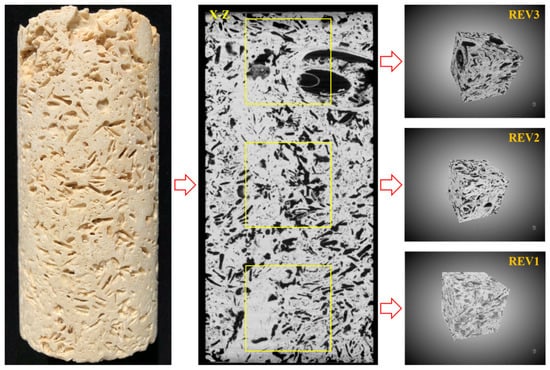Representative elementary volumes (REV) that are chosen for each test sample.
