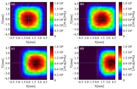 Collected irradiance flux on the cell surface: (a) STE = , (b) STE = , (c) STE = and (d) STE = .