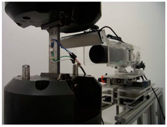 Close-up of test rig for optical and crack gauge measurement procedures.