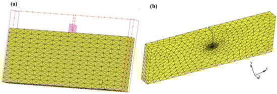 Over the years, numerical methods provide a more accurate approach to extract the SIFs. However, crack front shape in finite element (FE) analysis is still a challenge with error percentage far beyond the experimental solutions [5,6]. The geometry changes as the crack progress is ensured with adaptive remeshing techniques in FEM in SIF [7]. The accuracy depends on effective meshing and sensitivity of the crack front shape and smaller crack growth increments. The virtual crack closure technique (VCCT) option offers a simpler but more general way for obtaining the energy release rate estimation in crack propagation at the crack tip which requires additional post-processing procedures with more precise results [8,9]. Rybicki and Kanninen [10] proposed VCCT in two-dimensional finite element stress intensity analysis with a coarse grid for modes I and II. The method is performed with constant strain elements using nodal forces and nodal displacements, the results were poor when with higher-order elements. Shivakumar et al. [11] developed Irwin’s theory for three-dimensional bodies applied in the finite element method. However, not all conventional FEM meshing tools can perfectly compute the SIF because the singularity near the crack tip fields. Consequently, very fine meshes are appropriate near the crack tip [12].