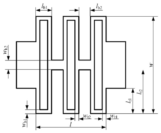 The dimension of the DL-LET joint is shown in Figure 2. In the beryllium bronze layer, the length of the torsion segment is lt1, and the width is wt1; the length of bending segment 1 is lb1, and the width is wb1. In the H18 aluminum foil, the length of bending segment 2 is lb2, and the width wb2 is the same as lb1. The thicknesses of the beryllium bronze layer and the H18 aluminum foil layer are t1 and t2, respectively.