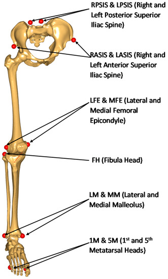 - Horsman, M.K.; Koopman, H.F.; Van Der Helm, F.C.; Prose, L.P.; Veeger, H.E.J. Morphologicalmuscle and joint parameters for musculoskeletal modelling of the lower extremity. Clin. Biomech. 2007, 22, 239–247. [Google Scholar] [CrossRef]