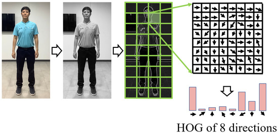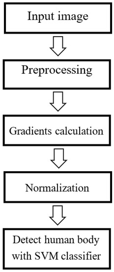 Figure 7. In this method, the HOG features of both positive images (human images) and negative images (non-human images) are extracted and used to fine-tune a pre-trained linear SVM classifier for human detection. The overall process of HOG-SVM detection is summarized in