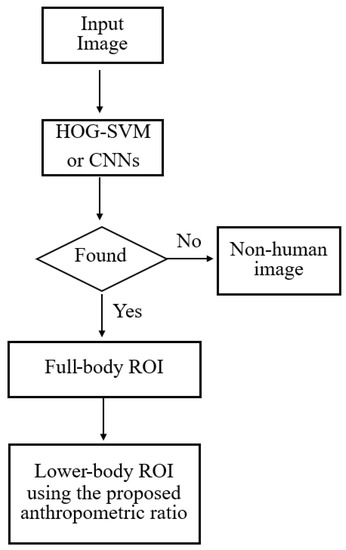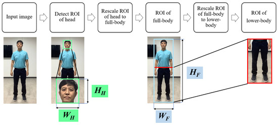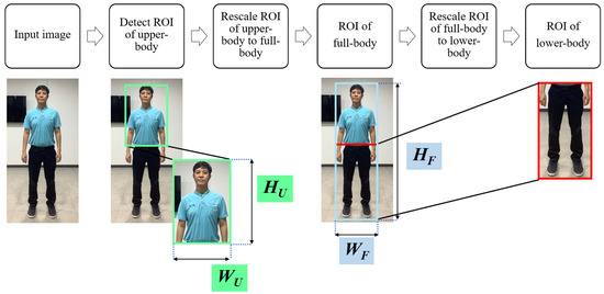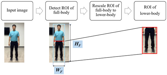Then, this full-body ROI is cropped to obtain the lower-body ROI as shown in Equations (