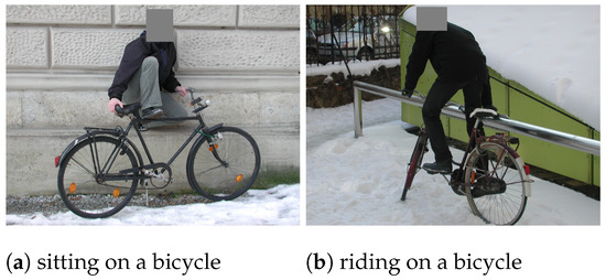 Case of a difference in pose between the training and test images: HOG-SVM cannot detect the lower-body of the person in this image because it depicts a human sitting on a bicycle and thus is not similar to the positive training images, i.e., standing human images. The A-CNNs uses the softmax function for classification, so the result is expressed in the form of a probability value expressing how close the input image is to the training images, whereas the OpenPose still can detect human keypoints because of the variety of postures used for training from the COCO data set [