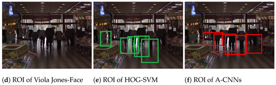 algorithm provides higher specificity than the other methods for detection on the non-human data set because most background images consist of scenes such as sightseeing locations and mountains; therefore, the Haar-like rectangular templates rarely match these backgrounds. Regarding the performance of A-CNNs, it is sometimes not fair to use such background data sets in deep learning unless the background images are further categorized into subclasses, such as trees, appliances and buildings. To enhance the detection performance, a similar problem has been solved by using a one-class classifier based on a CNNs [