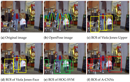 45]. Consequently, it seemed to provide the highest detection accuracy on the INRIA data set in this experiment. However, our A-CNNs model, which was trained on human body ROIs, could achieve higher specificity than OpenPose, which was trained on keypoints. According to