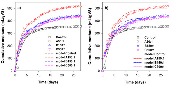 - Brulé, M.; Oechsner, H.; Jungbluth, T. Exponential model describing methane production kinetics in batch anaerobic digestion: A tool for evaluation of biochemical methane potential assays. Bioprocess Biosyst. Eng. 2014, 37, 1759–1770. [Google Scholar] [CrossRef] [PubMed]