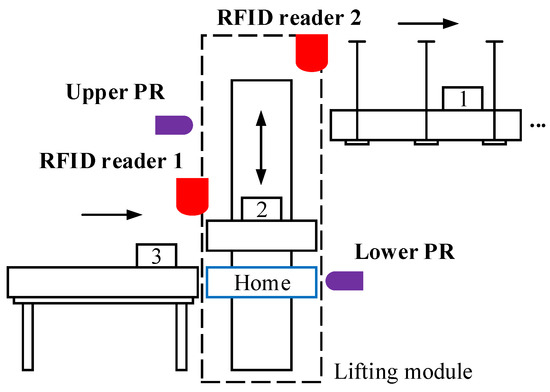 With the proposed multi-station ATS, the control system will need to address the complexity of distributing multiple containers to various stations. In addition, the solution for products distribution at the switching points where multiple containers appear at nearly the identical time also needs to be taken into account. For individual container identification, Pane et al., in [6], applied the radio frequency identification (RFID) technology associated with the conveying system. Vlad et al., in [7], proposed an arrangement of RFID readers along the conveying lines to determine the crucial location in a complex system, while Osman et al. also proposed a system using RFID technology to identify products with the RFID tags being attached on their surface [8]. According to Luu et al., in [9], RFID systems are presently rapidly developing. The authors in [9] also stated that the radio frequency of 13.56 MHz is used in the access control system and payment systems, as well as for identifying goods in warehouse systems and books in library systems. Based on the previous ideas, the RFID system is selected for the identification of moving containers in the system.
