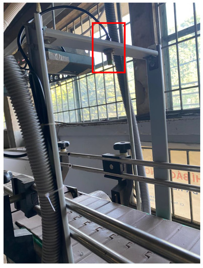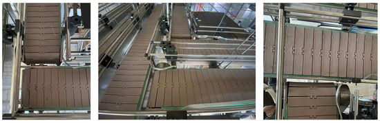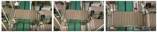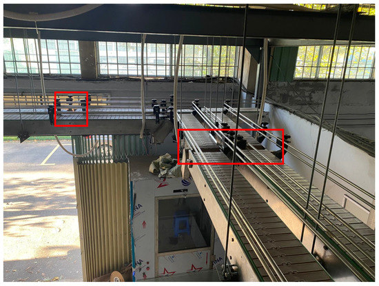 In Figure 3, the proposed control algorithm is applied in the real system to test the ability to transport containers according to the system built at BK-RECME. During the researching and designing process, the authors considered and solved several problems that resulted in the container being unable to complete the travel routes, such as (1) transition position between two conveyors (Figure 26); (2) perpendicular position between two conveyors (Figure 27); (3) placement of the proximity sensors on the sub-conveyors (Figure 28); (4) the location of the RFID readers to help identify containers entering or leaving the modules (Figure 29); (5) the system can be expanded, so it is necessary to ensure easy installation and a minimum number of inputs/outputs of the control modules. In other words, the system is helped to satisfy the assumptions and constraints set.