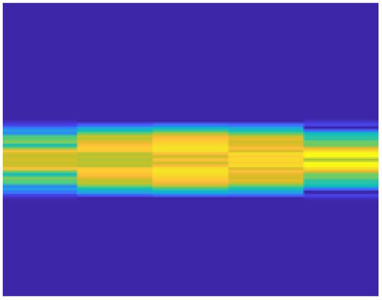 STFT divides a long signal that varies over time into shorter lengths to apply the Fourier transform. The presence of a specific frequency at a specific time can be identified when signals are divided into shorter time-lengths, and whether a specific frequency is present within a specific time can be identified when signals are divided into longer time-lengths. That is, a smaller window width is more advantageous for time resolution, whereas a larger one is more advantageous for frequency resolution. Figure 6 shows the image of the time–frequency representation by STFT.
