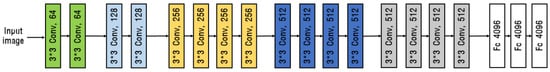 VGG-19 consists of 5 blocks with 19 layers including a convolutional layer and max pooling layer. Furthermore, it uses the smallest 3 × 3 filter for the convolution product [30]. Figure 12 shows the structure of VGG-19.