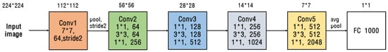 - He, K.; Zhang, X.; Ren, S.; Sun, J. Deep residual learning for image recognition. In Proceedings of the IEEE Conference on Computer Vision and Pattern Recognition, Las Vegas, NV, USA, 27–30 June 2016; pp. 770–778. [Google Scholar]
