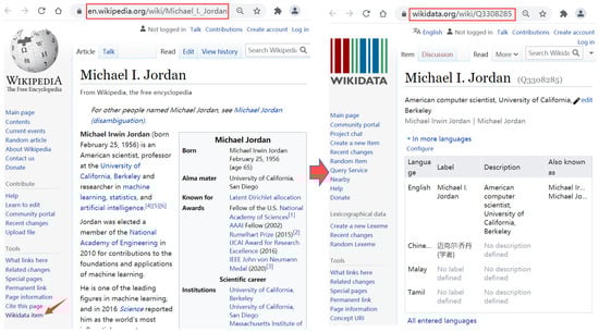 Example for the Wikipedia–Wikidata mapping. We can obtain the corresponding Wikidata ID through the entity’s Wikipedia page.
