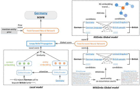 - Ratinov, L.; Roth, D.; Downey, D.; Anderson, M. Local and global algorithms for disambiguation to wikipedia. In Proceedings of the 49th Annual Meeting of the Association for Computational Linguistics: Human Language Technologies, Portland, OR, USA, 19–24 June 2011; pp. 1375–1384. [Google Scholar]