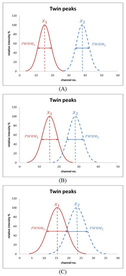 (A) The two peaks can be identified as wholly separated. (B) The two peaks barely passed the Student’s t-test evaluation. (C) The two peaks are too close to be differentiated.