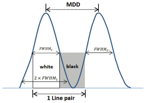 The diagram shows the difference between MDD and line pair/cm. The MDD can be interpreted as having a similar width to one line pair.