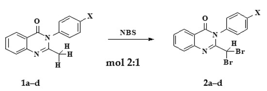 2.2.2. Synthesis of 2-dibromomethyl-3-p-substitutedphenyl-4(3H)-quinazolinone (2a–d)