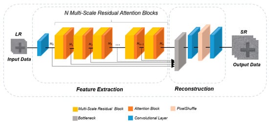 - A Multi-Scale Residual Attention Block was constructed by applying an Attention Mechanism based on the Multi-Scale Residual Network. We proposed a High-Resolution (HR) model in which the resolution of Low-Resolution (LR) images is improved and the extracted features are improved by reconstructing the model structure of a multiscale network.