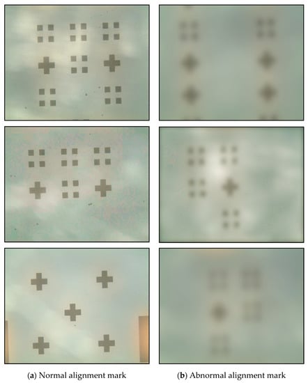 where is the deviation of the overlay error for the standard -th masking step, and is the deviation from the standard total overlay tolerance. Research is being conducted to reduce overlay deviation, reduce loss by minimizing misalignment, and optimize process technology. KIM [21] proposed a wafer alignment process using a multi-vision method for industrial manufacturing. Schmitt-Weaver et al. [22] proposed an efficient high-density wafer alignment metrology method by combining deep learning and wafer leveling metrology of photolithography equipment. Jeong et al. [23] proposed an improved wafer alignment model algorithm for better product overlay. Lee [24] proposed a marker layout to optimize overlay alignment in photolithography. As a method of correcting the position of a wafer using a vision system, a method using an alignment mark is mainly applied. Kim et al. [25] proposed an alignment and position correction method by object deformation.