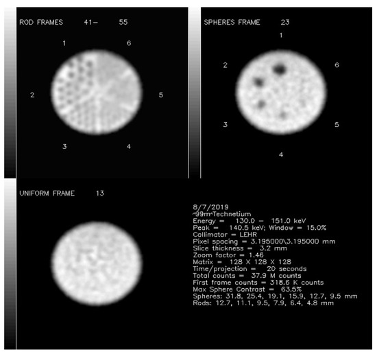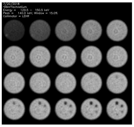 - di Filippo, F.P. Assessment of PET and SPECT phantom image quality through automated binary classification of cold rod arrays. Med. Phys. 2019, 46, 3451–3461. [Google Scholar] [CrossRef] [PubMed]