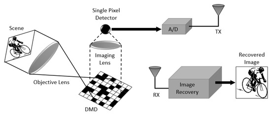 - Duarte, M.F.; Davenport, M.A.; Takhar, D.; Laska, J.N.; Sun, T.; Kelly, K.F.; Baraniuk, R.G. Single-pixel imaging via compressive sampling. IEEE Signal Process. Mag. 2008, 25, 83–91. [Google Scholar] [CrossRef] [Green Version]