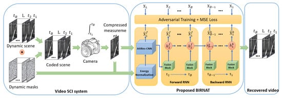 - Cheng, Z.; Lu, R.; Wang, Z.; Zhang, H.; Chen, B.; Meng, Z.; Yuan, X. BIRNAT: Bidirectional recurrent neural networks with adversarial training for video snapshot compressive imaging. In Proceedings of the European Conference on Computer Vision (ECCV), Glasgow, UK, 23–28 August 2020. [Google Scholar]