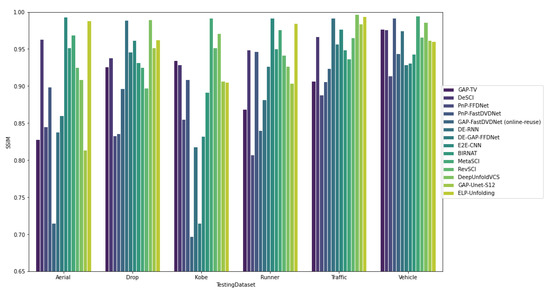 - Cheng, Z.; Chen, B.; Liu, G.; Zhang, H.; Lu, R.; Wang, Z.; Yuan, X. Memory-efficient network for large-scale video compressive sensing. In Proceedings of the IEEE/CVF Conference on Computer Vision and Pattern Recognition (CVPR), Nashville, TN, USA, 20–25 June 2021. [Google Scholar]