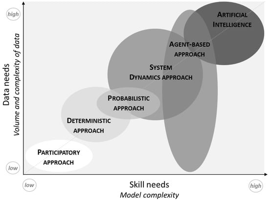 Six main modelling approaches with different levels of complexity in terms of skills and data needs were identified (Figure 2), as well as their characteristics. Each approach is further described below, highlighting requirements for application, and their strengths and weaknesses.