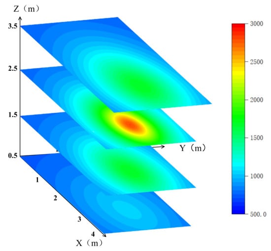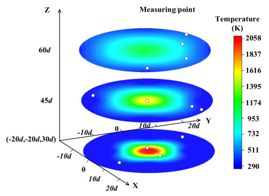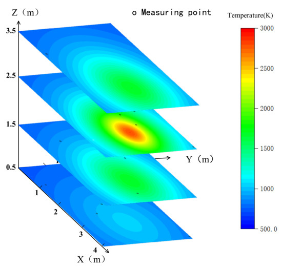 where —temperature at the points of the single-peak 3D temperature distribution (K); —X coordinate(m); —Y coordinate(m); —Z coordinate(m) and —initial boundary condition.