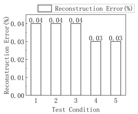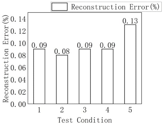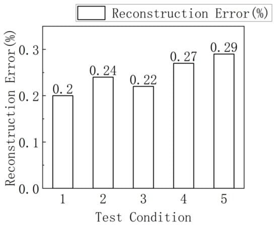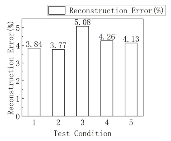 To analyze the adaptability of the 3D temperature distribution reconstruction algorithm under different working conditions, the temperature profile data of the five test working conditions are reconstructed, and the reconstruction error is shown in Figure 4 below.
