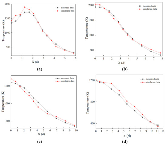 The fuel consists of methane and air mixed in a volume ratio of 1:3. The accompanying heat flow is formed by the combustion of mixed gases such as acetylene and hydrogen. The specific parameter data are shown in Table 1.