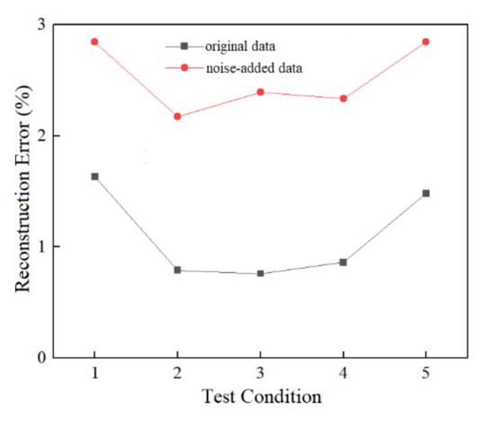 The Tucker decomposition algorithm is used to reconstruct the temperature distribution data of the five test conditions. The error is shown in Figure 8.