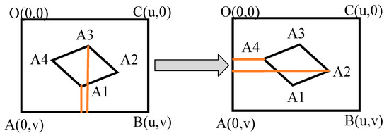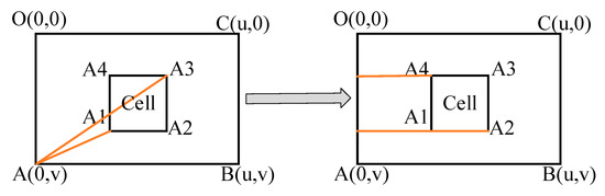 For the horizontal channel, the method used mainly includes two steps. First, we calculated the distance between the vertices of the cell and the vertex of the lower left corner of the image to identify the vertices A1 and A3. Then, we calculated the abscissa of the remaining two vertices. The vertices A2 and A4 can be identified as well. The specific identification method is shown in Figure 5.