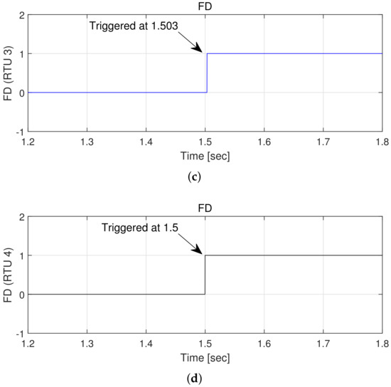 Fault detection performance at each RTU. (a) RTU1; (b) RTU2; (c) RTU3; (d) RTU4.