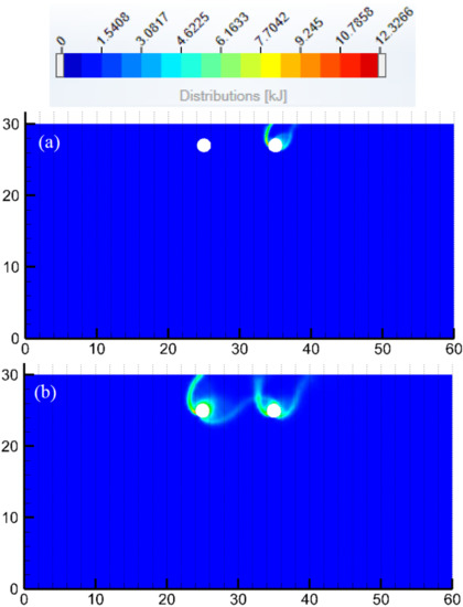 The scope of the collapse and the failure patterns of the double tunnels are the key issues in engineering practice. Figure 9, Figure 10, Figure 11 and Figure 12 present the distribution of shear dissipation for a better understanding of how the failure patterns evolved with different conditions.