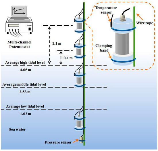 - Hou, B.R.; Zhang, J.L.; Sun, H.Y.; Li, Y.; Xiang, B. Corrosion of C-Mn steel in simulated tidal and immersion zones. Brit. Corros. J. 2001, 36, 310–312. [Google Scholar] [CrossRef]