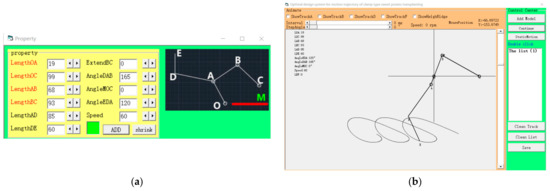 Optimizing system interface for transplanting manipulator. (a) Interface for adjusting parameters; (b) interface showing movement trajectory.