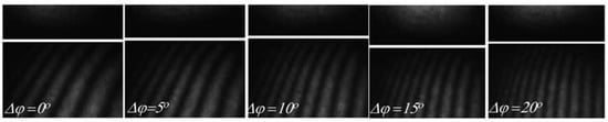 Finally, the reader will note that the wavelength of each fringe pattern also increases from some minimum value (Equations (19) and (20)) when φ − φP = π/2 or φ − φS = π/2, respectively. This is the direction along which the equal gray-value fringes are formed. The wavelength of the spatial pattern increases when φ − φS decreases, tending to a value of infinity.