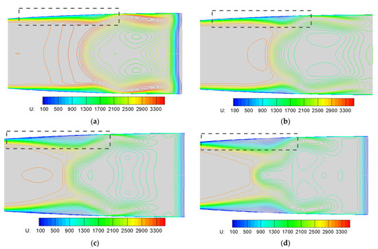 Since the flow in the center of the nozzle is not affected by the low-velocity zone, the flow field reaches stability first, which is called center startup. Then, as the low-velocity zone moves, the flow field gradually becomes stable from the nozzle center to the wall. When the flow field is stable at the entire nozzle outlet, it is called complete startup.