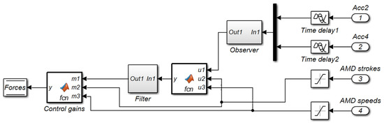 In addition to studying the time-delay compensation of a single time-delay system, appropriate compensation control gains are also needed to consider the multi-time-delay characteristics. For example, the Lagrange equation of a dissipative system was used to investigate the stability and bifurcation of a system with multi-time delay feedback [25]. A robust control strategy was programmed for discrete-time systems with non-equal time delays, and the input delays were considered in the control law synthesis [26]. Based on Takagi–Sugeno fuzzy controller design techniques, to derive the stability conditions of a multiple time-delay system, a global state-feedback nonlinear controller was constructed [27]. According to linear matrix inequalities (LMIs), the stability and robust H∞ controller for time-delayed systems were investigated [28]. The reference [29] was concerned with the H∞ synchronization control problem for a class of chaotic systems with multiple delays. However, the time delay of each subsystem is not equal since the performance of each subsystem is different. Thus, the performance of the whole system is reduced due to each subsystem works asynchronously. In conclusion, it is required to design a suitable control gain for the multi-time-delay characteristics of the AMD control system with multiple subsystems. Specially, the method with an H∞ control law, which enhances both performance and robustness of these systems, needs to be widely studied.