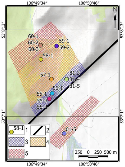 - Seminskii, K.Z.; Kozhevnikov, N.O.; Cheremnykh, A.V.; Pospeeva, E.V.; Bobrov, A.A.; Olenchenko, V.V.; Tugarina, M.A.; Potapov, V.V.; Burzunova, Y.P. Interblock zones of the northwestern Baikal rift: Results of geological and geophysical studies along the Bayandai Village—cape Krestovskii profile. Russ. Geol. Geophys. 2012, 53, 194–208. [Google Scholar] [CrossRef]