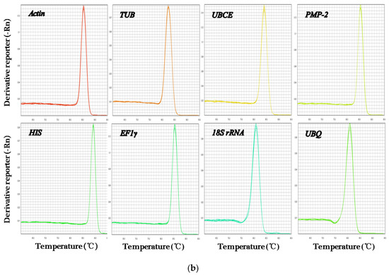 - Vandesompele, J.; De Preter, K.; Pattyn, F.; Poppe, B.; Van Roy, N.; De Paepe, A.; Speleman, F. Accurate Nnormalization of Real-Time Quantitative RT-PCR Data by Geometric Averaging of Multiple Internal Control Genes. Genome Biol. 2002, 3, research0034.1. [Google Scholar] [CrossRef] [Green Version]
