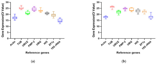 3.2. Expression Profiles of Candidate Reference Genes